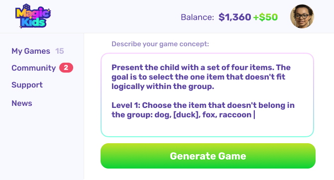 I joined Magic Kids to support my child's learning, but when I saw how engaged he became with educational games, I started creating my own lessons. It was the right choice!
